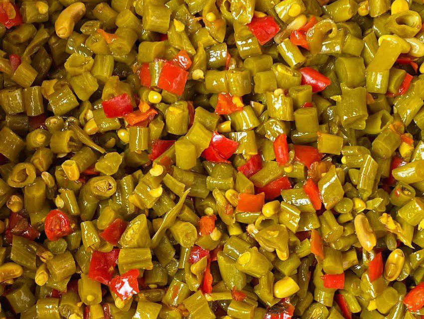 我公司完全按照國家食品生產標準建設:自動篩選、清洗、分切、壓榨、脫鹽、全自動裝袋真_空_包_裝_機、巴士殺菌等設備齊全,公司投入使用的車間冷庫1000多平米,腌制場地100多畝。